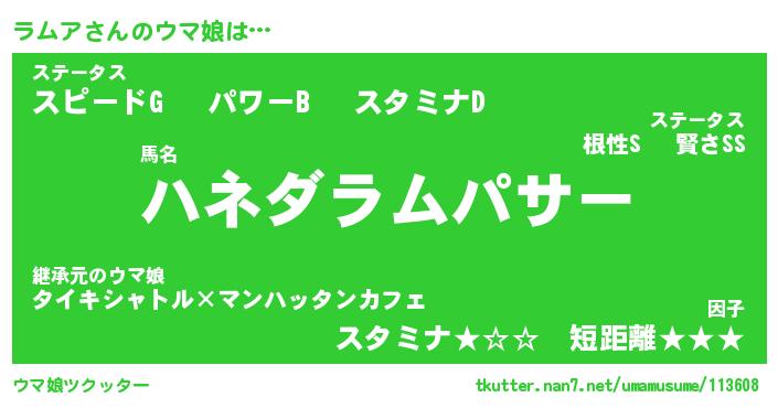 | ポケモン風あだ名 | 『ラムチュウ』『ラムアダネ』 |