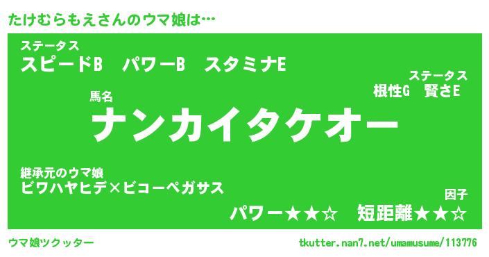 | ポケモン風あだ名 | 『タケチュウ』『タケムダネ』 |