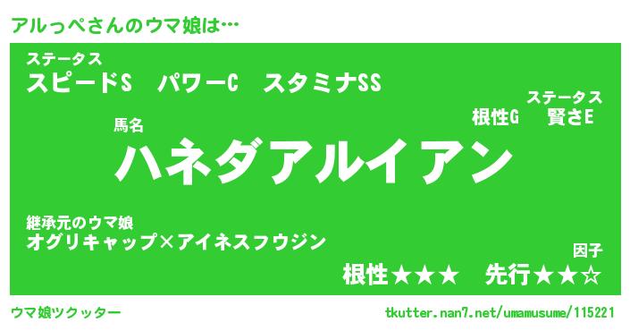 | 意味不明あだ名 | 『ペロリンアルっぺ』『永久保存アルっぺ』 |