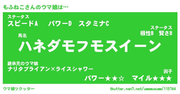 | ポケモン風あだ名 | 『モフチュウ』『モフネダネ』 |