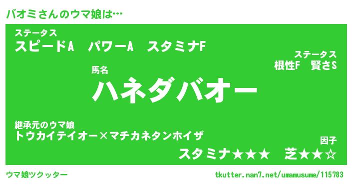 | 自動車の名前っぽいあだ名 | 『バオティマ』『バスラー』『デミバ』 |