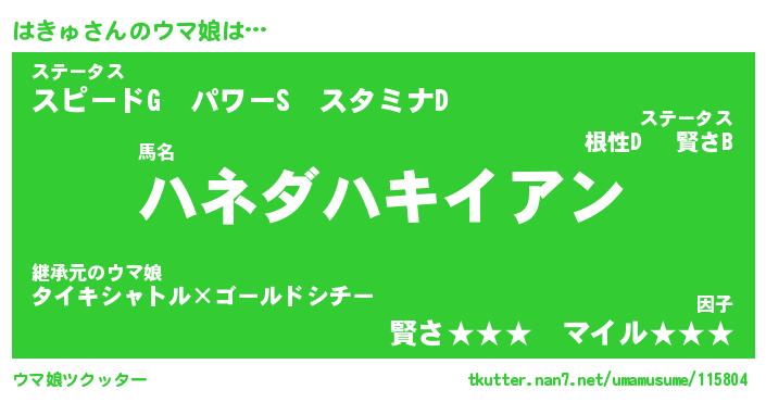 | ポケモン風あだ名 | 『ハキチュウ』『ハキュダネ』 |