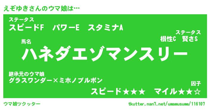 | 欧米人風あだ名 | 『マイケルえぞゆき』『ウサインえぞゆき』 |