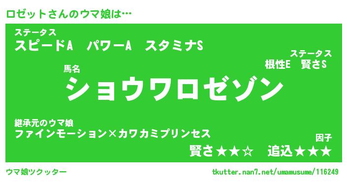 | 意味不明あだ名 | 『ペロリンロゼット』『永久保存ロゼット』 |