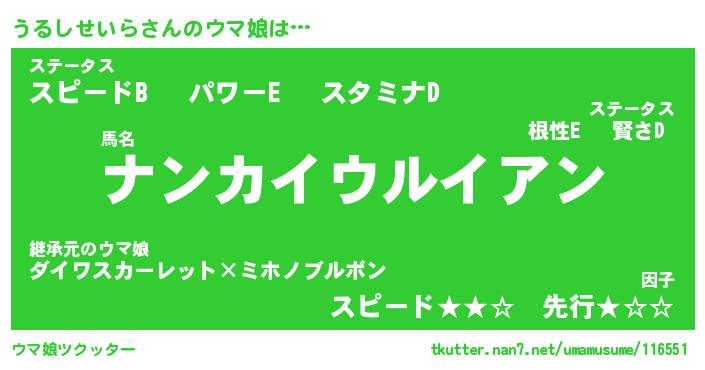 | ヒーロー風カッコイイあだ名 | 『スーパーウルシセイラ』『黄金騎士ウル』 |