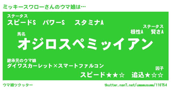 | 欧米人風あだ名 | 『マイケルミッキースワロー』 |