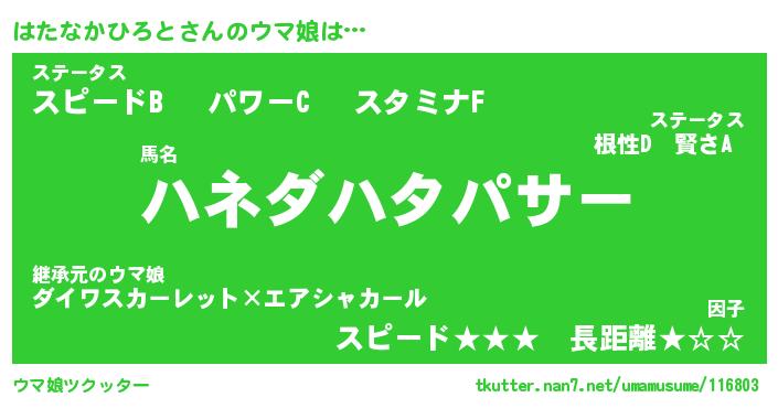 | ポケモン風あだ名 | 『ハタチュウ』『ハタナダネ』 |