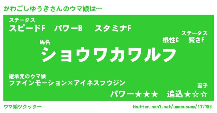 | ファンタジー風あだ名 | 『カワフェル』『ファントムカワス』 |