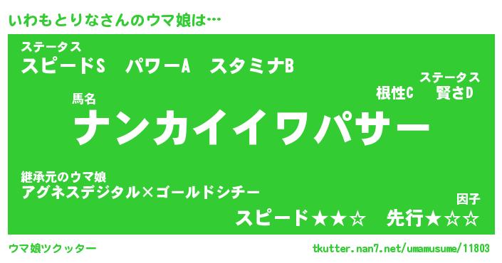 | 2回繰り返すあだ名 | 『いわいわ』『いいわわ』『いそいそ』 |