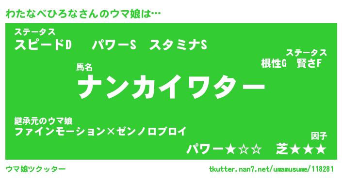 | ポケモン風あだ名 | 『ワタチュウ』『ワタナダネ』 |