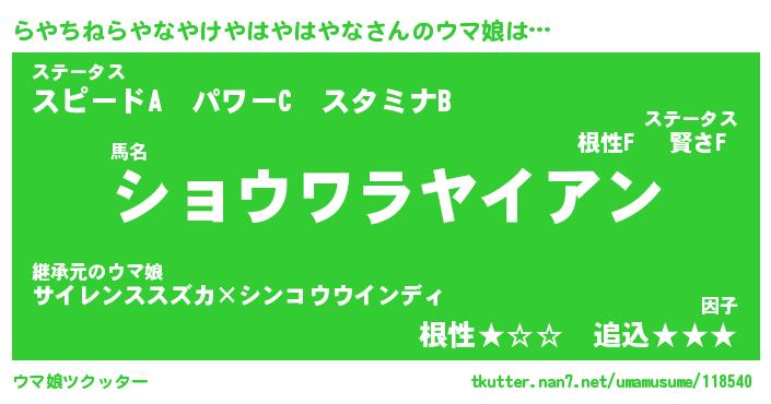| 2回繰り返すあだ名 | 『らやらや』『ららやや』『ぐらぐら』 |