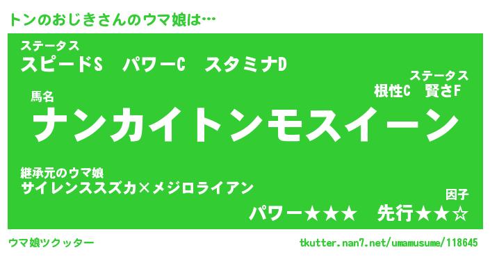 | 男性向けラノベタイトル風あだ名 | 『トンのおじきの憂鬱』 |