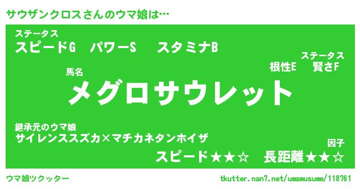 | 料理風あだ名 | 『ほっこり♪サウザンクロスの味噌そぼろ煮』 |
