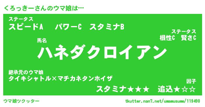 | 意味不明あだ名 | 『ペロリンくろっきー』 |