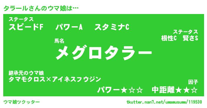 | ヒーロー風カッコイイあだ名 | 『スーパータラール』『幻影騎士タラ』 |
