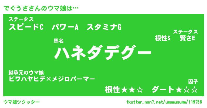 | ポケモン風あだ名 | 『デグチュウ』『デグウダネ』 |