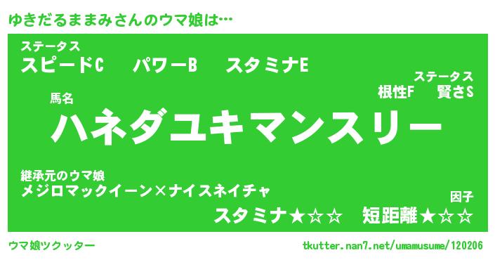 | 自動車の名前っぽいあだ名 | 『ユキティマ』『ユスラー』『デミユ』 |