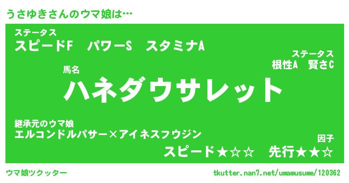 | ポケモン風あだ名 | 『ウサチュウ』『ウサユダネ』 |