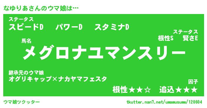 | 欧米人風あだ名 | 『マイケルなゆりあ』『ウサインなゆりあ』 |