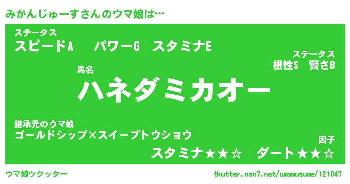 | 欧米人風あだ名 | 『マイケルみかんじゅーす』 |