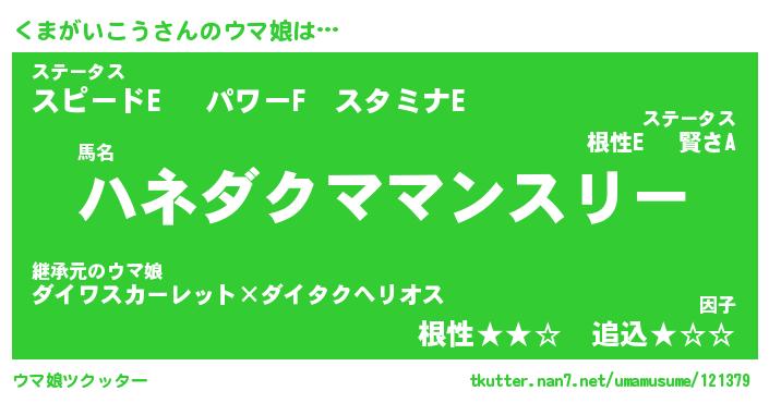 | 自動車の名前っぽいあだ名 | 『クマティマ』『クスラー』『クント』 |