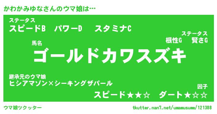 | ポケモン風あだ名 | 『カワチュウ』『カワカダネ』 |