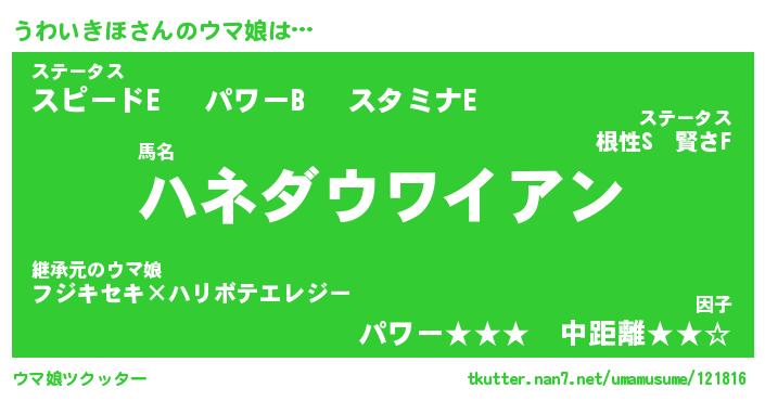 | ポケモン風あだ名 | 『ウワチュウ』『ウワイダネ』 |