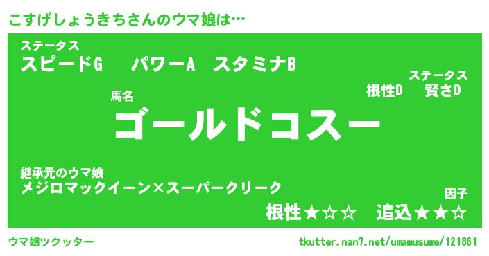 | ポケモン風あだ名 | 『コスチュウ』『コスゲダネ』 |
