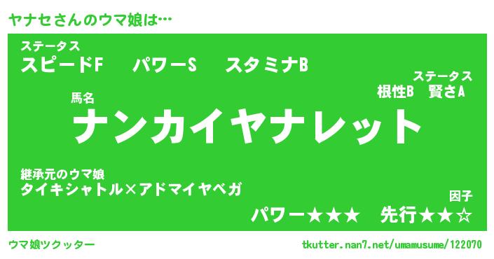 | 意味不明あだ名 | 『ペロリンヤナセ』『ヤナセフォーエバー』 |
