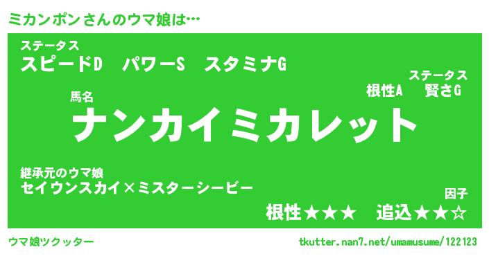 | ポケモン風あだ名 | 『ミカチュウ』『ミカンダネ』 |