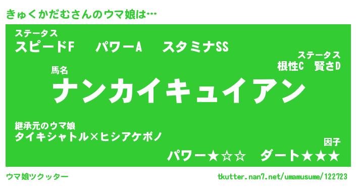 | ヒーロー風カッコイイあだ名 | 『スーパーキュクカダム』『暗黒騎士キュ』 |