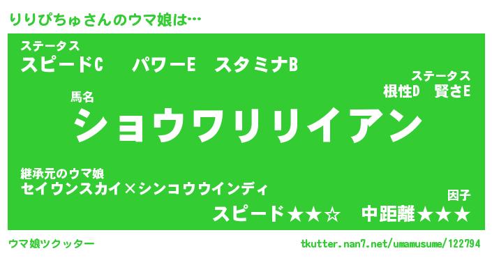 | 自動車の名前っぽいあだ名 | 『プリリリ』『リクア』『デミリ』 |