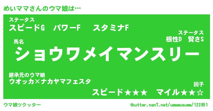 | 伝説のあだ名 | 『伝説の竜騎士めいママ』 |