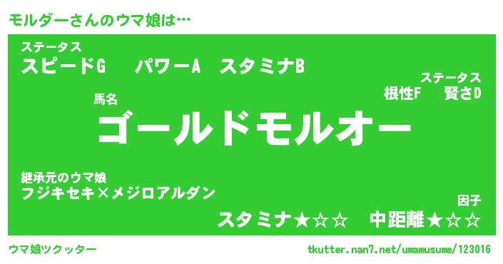 | ヒーロー風カッコイイあだ名 | 『スーパーモルダー』『黄金騎士モル』 |