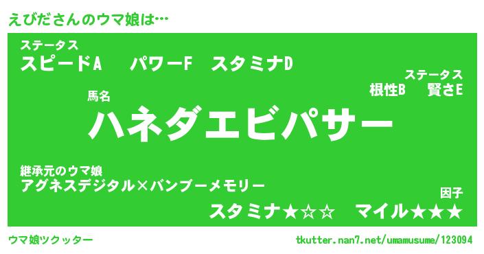 | ポケモン風あだ名 | 『エビチュウ』『エビダダネ』 |