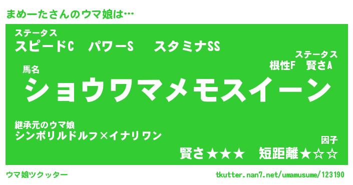 | 意味不明あだ名 | 『ペロリンまめーた』『永久保存まめーた』 |