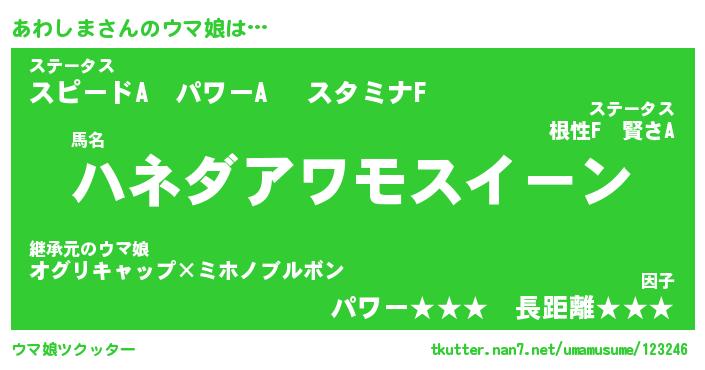 | ポケモン風あだ名 | 『アワチュウ』『アワシダネ』 |