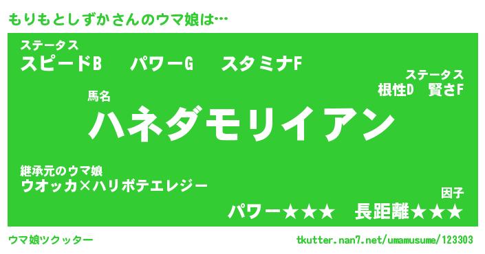 | ポケモン風あだ名 | 『モリチュウ』『モリモダネ』 |