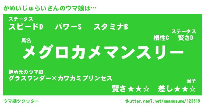 | 肩書あだ名 | 『かめいじゅらい御曹司』 |