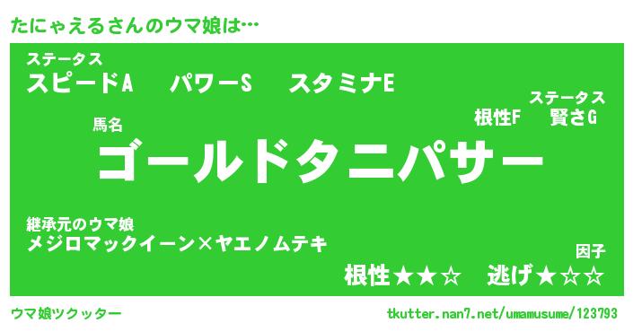 | ポケモン風あだ名 | 『タニチュウ』『タニャダネ』 |