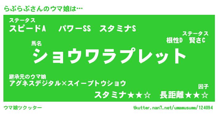 | ポケモン風あだ名 | 『ラプチュウ』『ラプラダネ』 |
