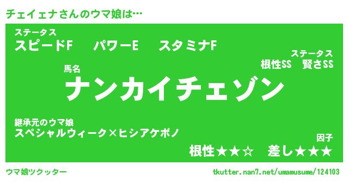 | 料理風あだ名 | 『節約★チェイェナと油揚げの玉子丼』 |