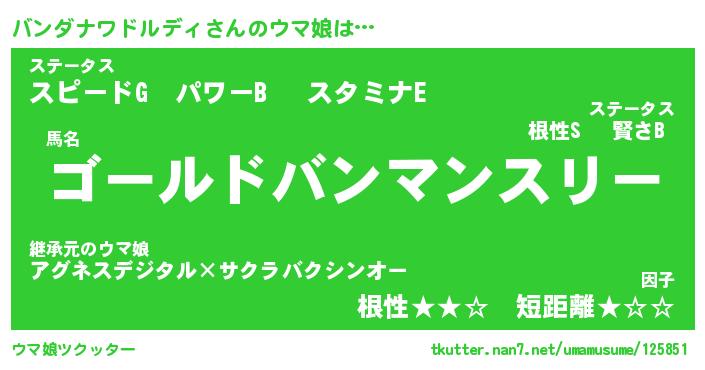 | ポケモン風あだ名 | 『バンチュウ』『バンダダネ』 |