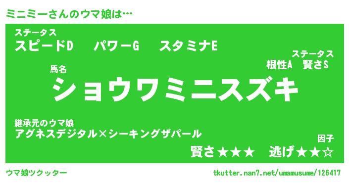| 意味不明あだ名 | 『ペロリンミニミー』『永久保存ミニミー』 |