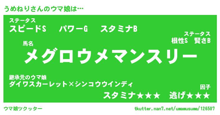 | ファンタジー風あだ名 | 『ウメフェル』『エターナルウメネリー』 |