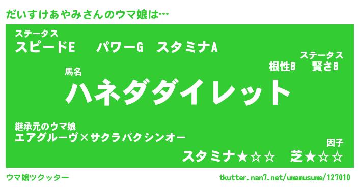 | 伝説のあだ名 | 『封印されしスナイパーだいすけあやみ』 |