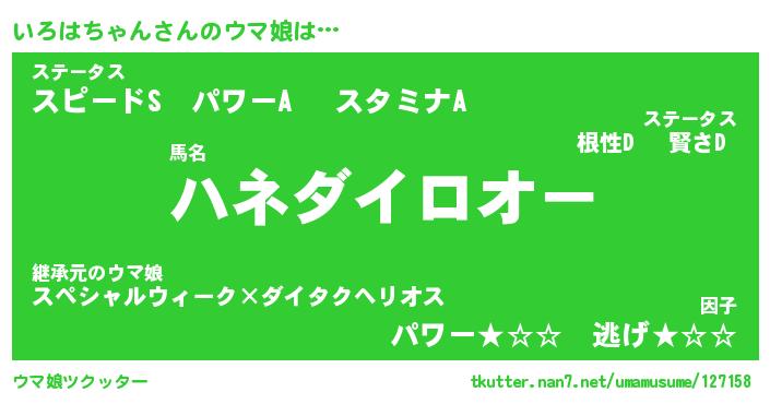 | ヒーロー風カッコイイあだ名 | 『スーパーイロハチャン』『魔戒騎士イロ』 |