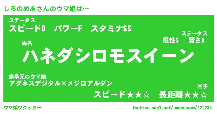 | ポケモン風あだ名 | 『シロチュウ』『シロノダネ』 |