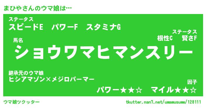 | ファンタジー風あだ名 | 『マヒフェル』『エターナルマヒヤー』 |
