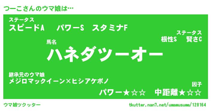 | ポケモン風あだ名 | 『ツーチュウ』『ツーコダネ』 |